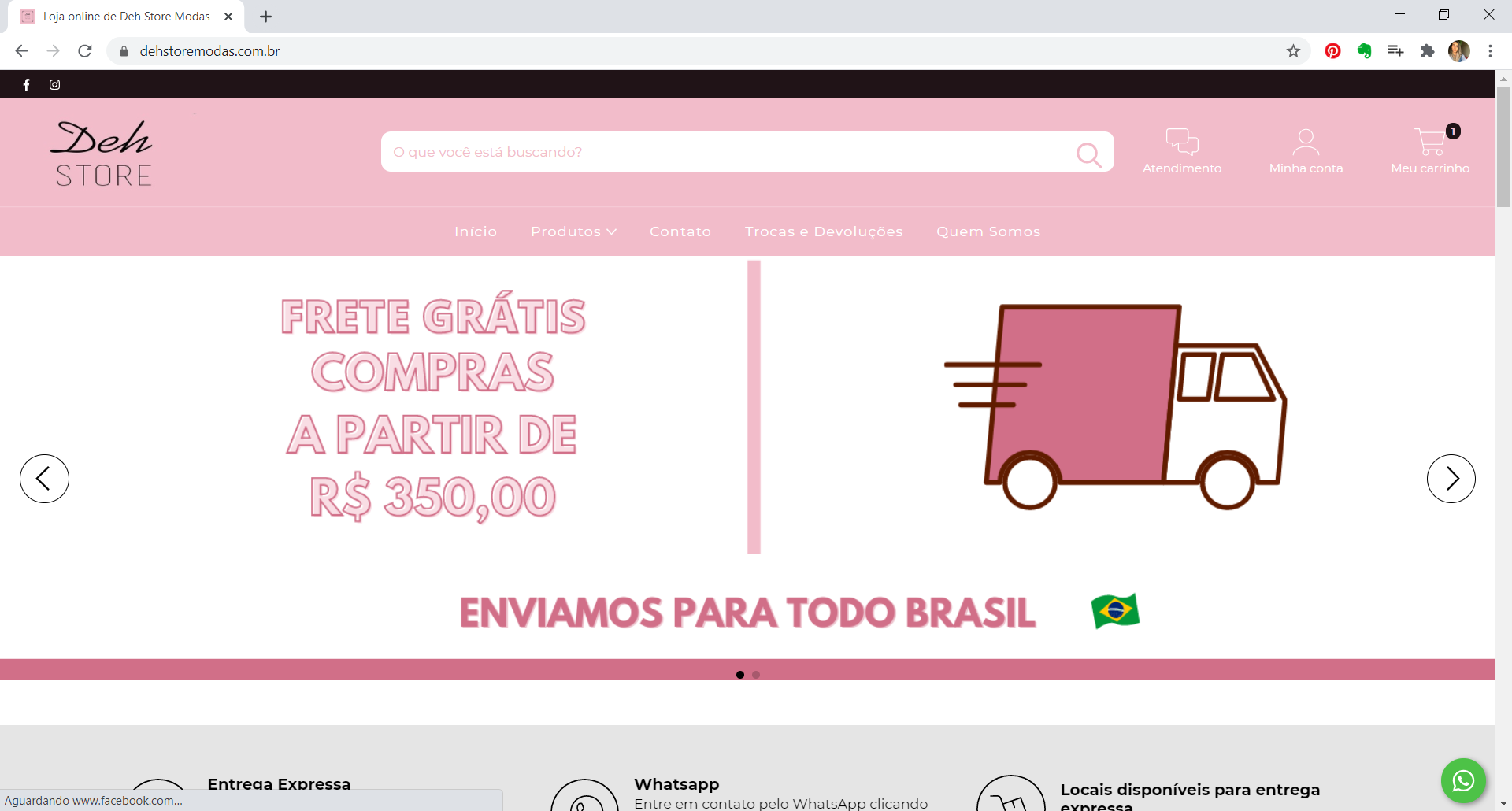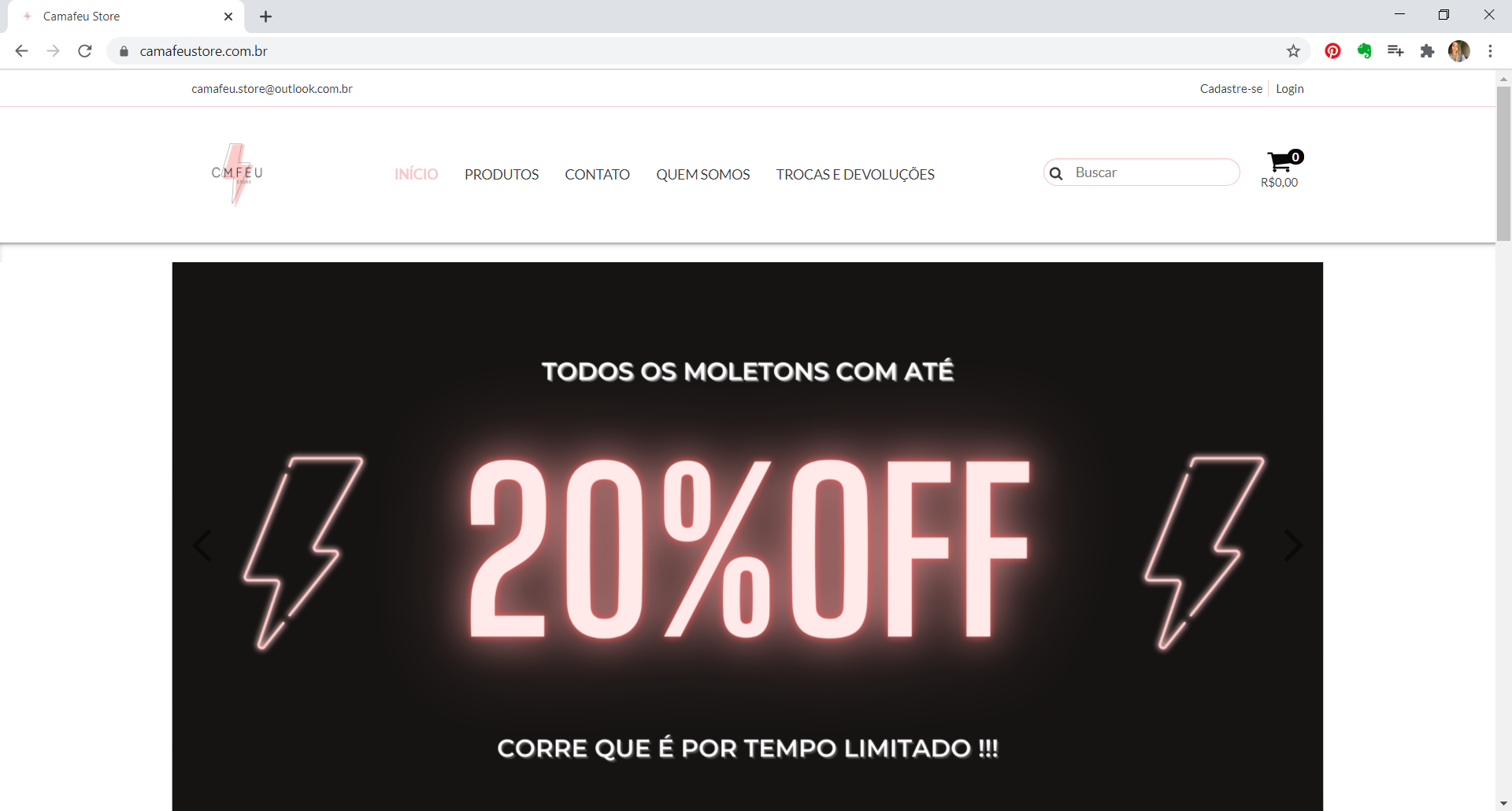 Website para E-commerce criado e personalizado de acordo com a identidade visual da marca na plataforma NuvemShop.